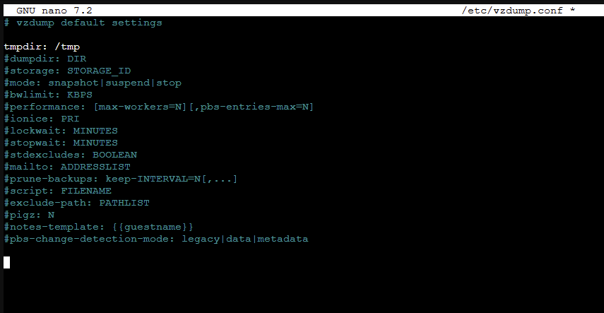 The only line changed is the tmpdir: one. Set it to /tmp to prevent doing the compression and such on the target volume.